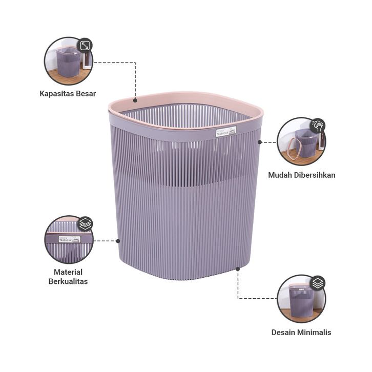 Tempat Sampah Tanpa Tutup - Ungu/Pink Tong Sampah Wadah Pembuangan Alat Kebersihan Trash Bin