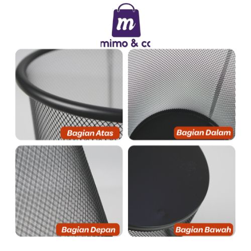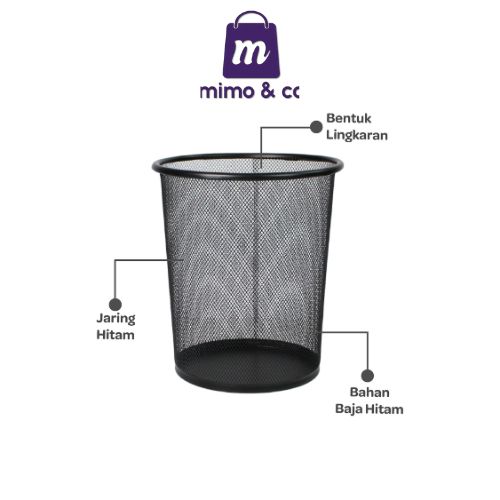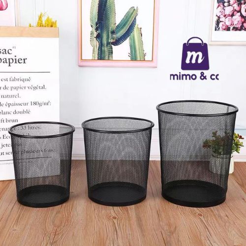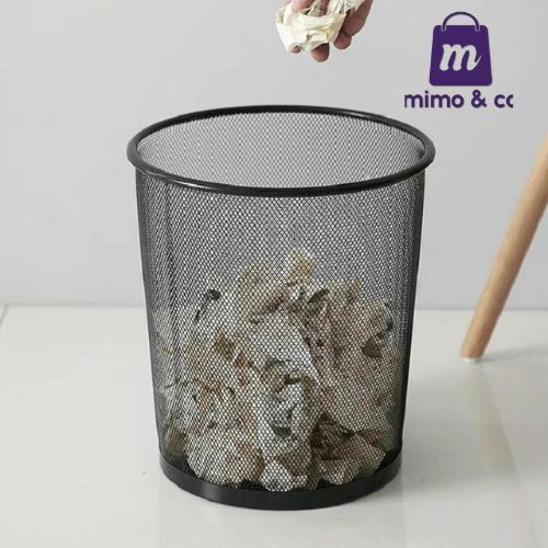 Tempat Sampah Kantor Bulat Hitam – Tong Jaring Besi Elegan & Kuat Stylish - MH04
