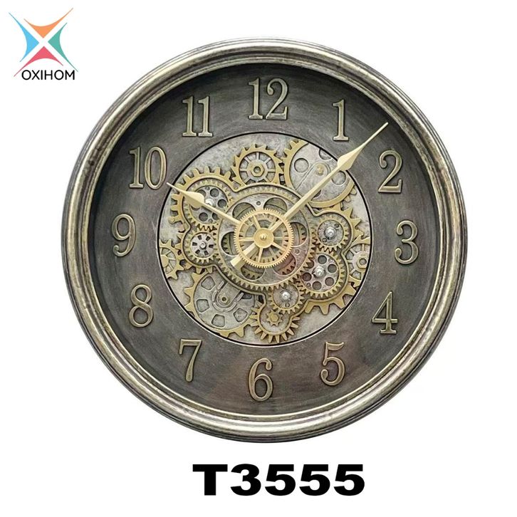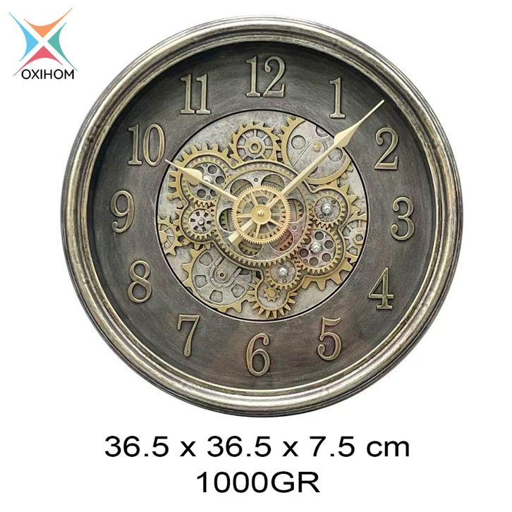Jam Dinding - Jam Dinding Bulat 36 cm dengan Roda Gear Putar Jam Dinding Silent Vintage Aesthetic Mewah Modern Estetik