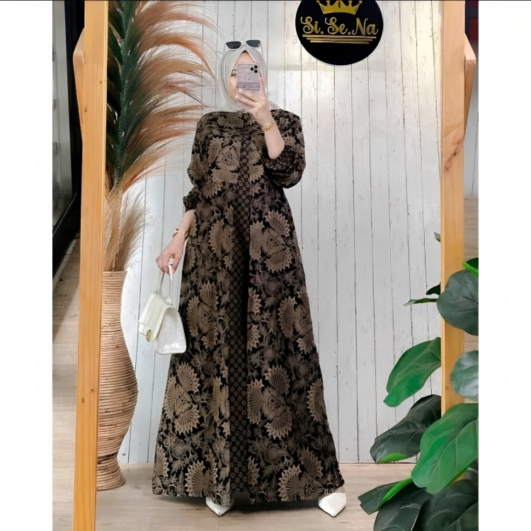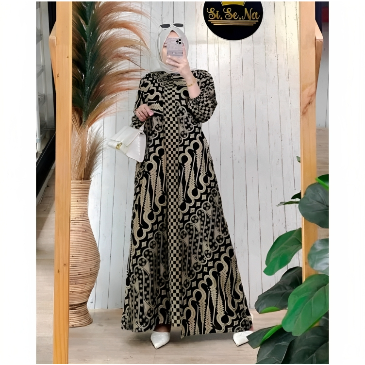 BAJU GAMIS BATIK WANITA MODERN KOMBINASI POLOS PEKALONGAN JUMBO LEBARAN TERBARU