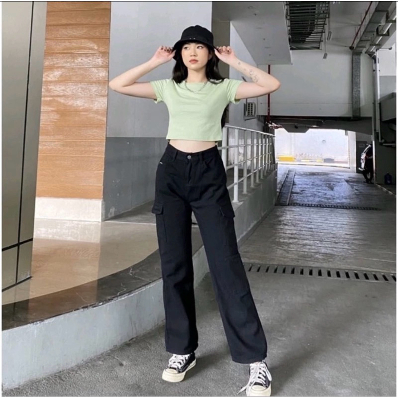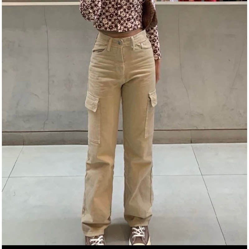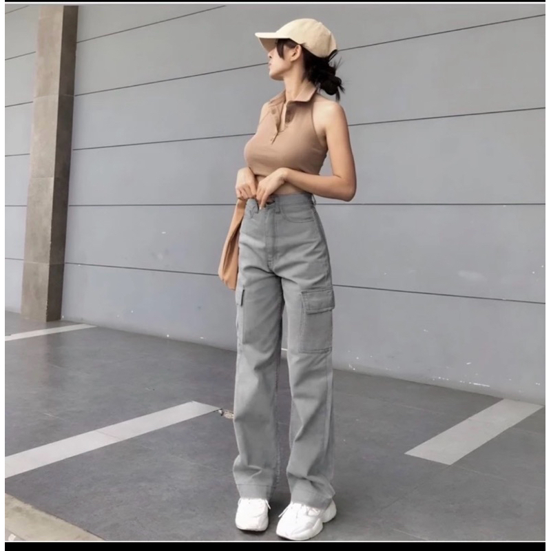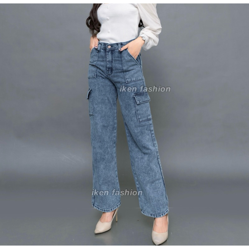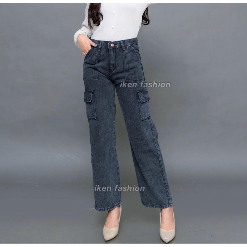 HIGHWAIST CARGO JEANS WANITA // KULOT JEANS CARGO LOOSE