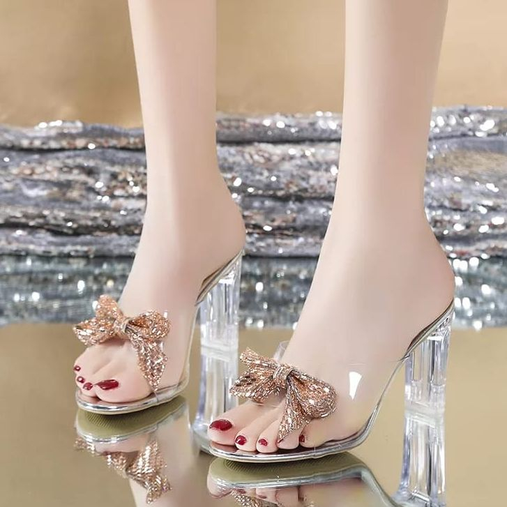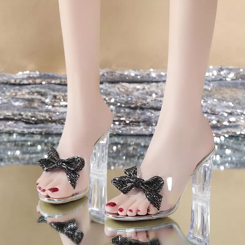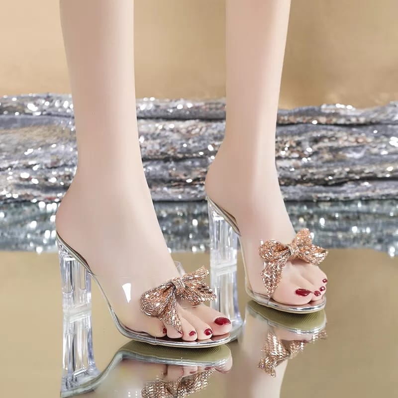 AURORA - HIGH HEELS DIANA SANDAL PESTA SEPATU WANITA HAK KACA GLAMOUR DENGAN VARIASI PITA SATIN CANTIK