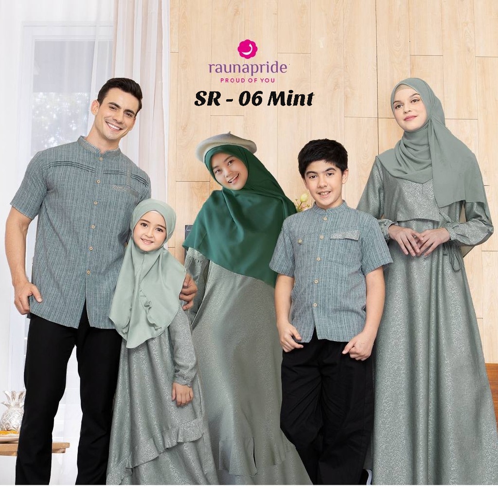 BAJU SARIMBIT KELUARGA COUPLE PASANGAN RAUNA LEBARAN SR - 06 MINT FASHION MUSLIM GAMIS KOKO PRIA WANITA ANAK
