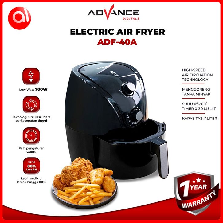 AIR FRYER ADF-40A MESIN PENGGORENG TANPA MINYAK AMAN UNTUK KESEHATAN 700 WATT GARANSI RESMI ADVANCE ORIGINAL TERMURAH