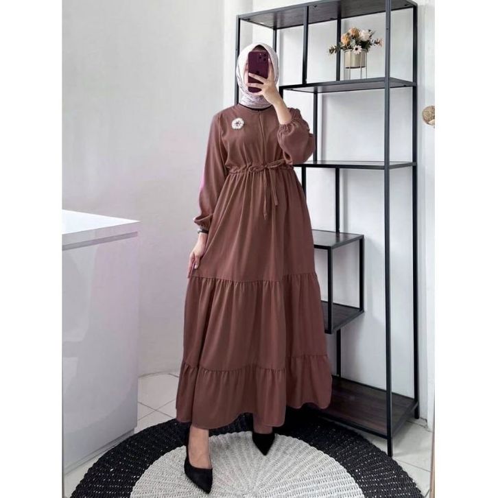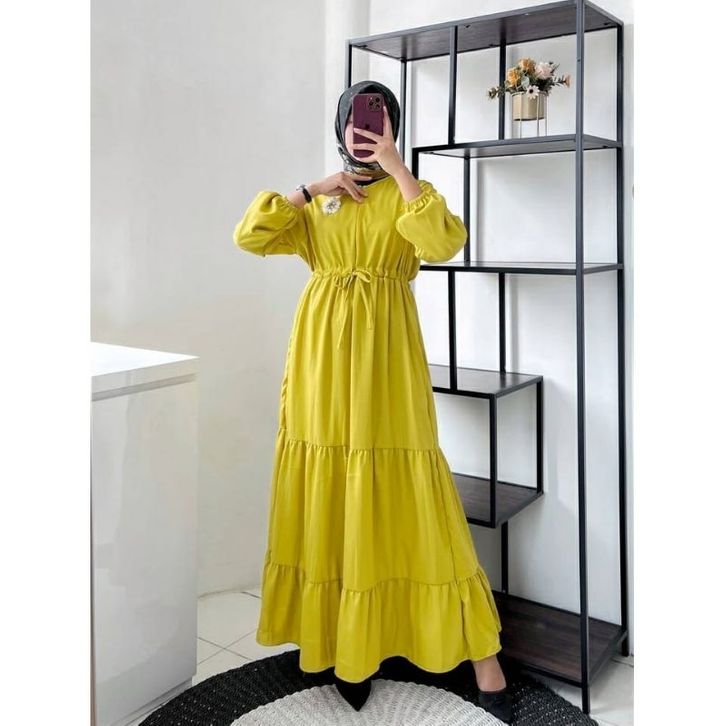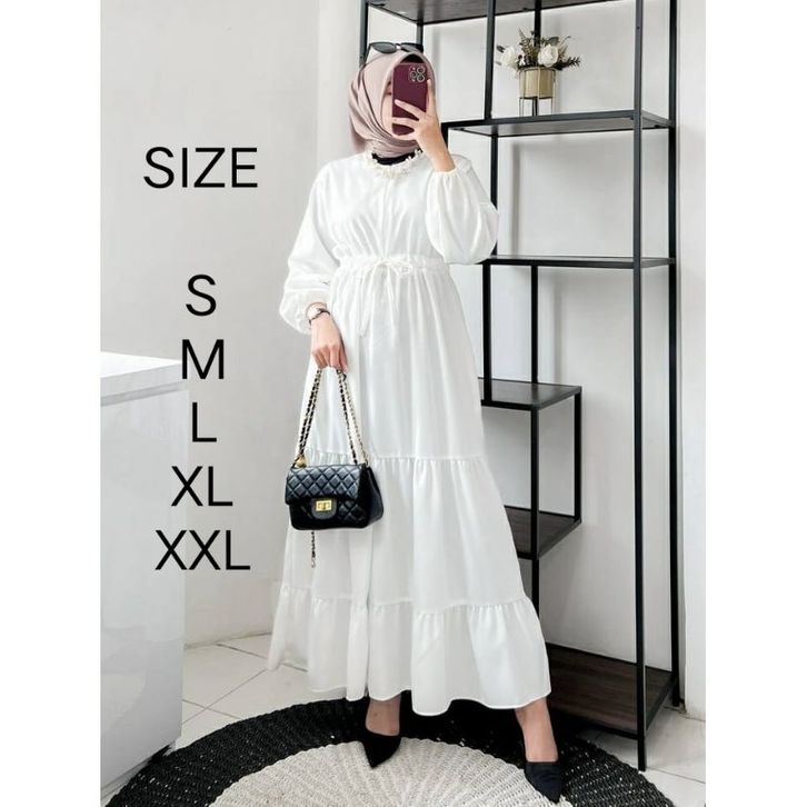ADIRA SIZE S, M, L, XL, XXL MAXY DRESS BAJU REMAJA PUTIH POLOS KOREAN LOOK STYLE KEKINIAN/GAMIS CRINCLE AIRFLOW PREMIUM