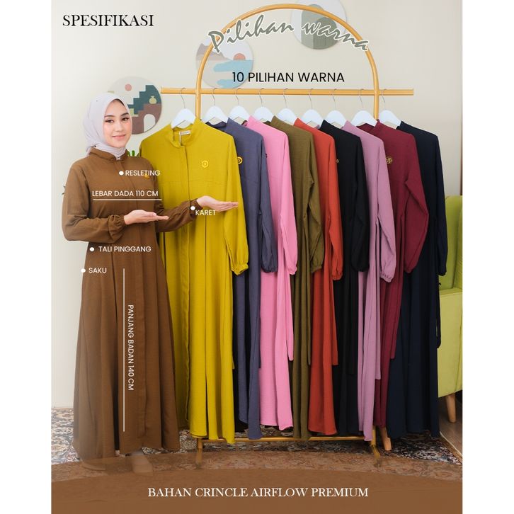 Gamis Salwa Bahan Crinkle Airflow Premium Baju Wanita Muslimah Polos Terbaru Lebaran 2024 Busui friendly by Nabil Serie