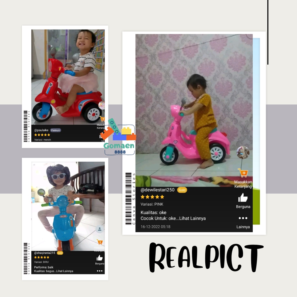 (GRATIS ONGKIR) Mainan Anak Mini Bike 691- Maenan Motoran Scooter - Merah Vespa mini mainan tunggang musik melodi