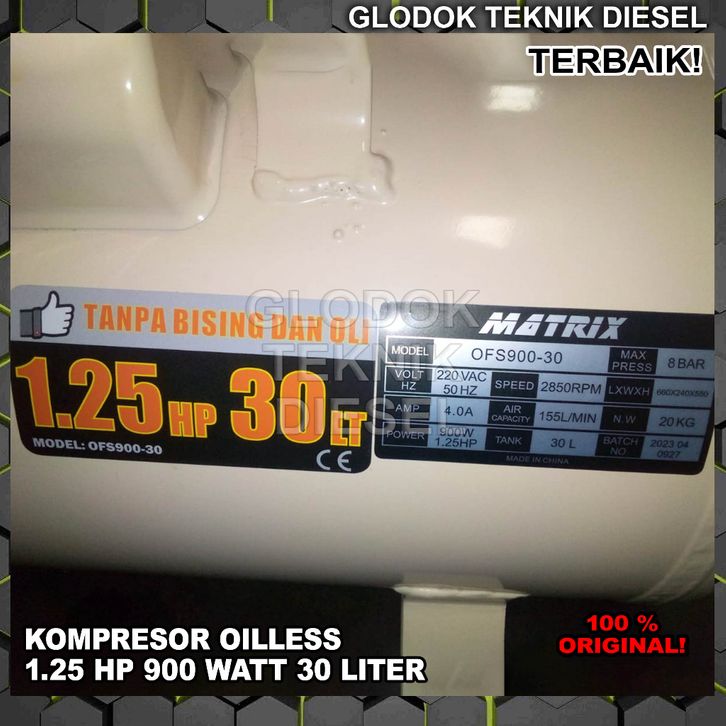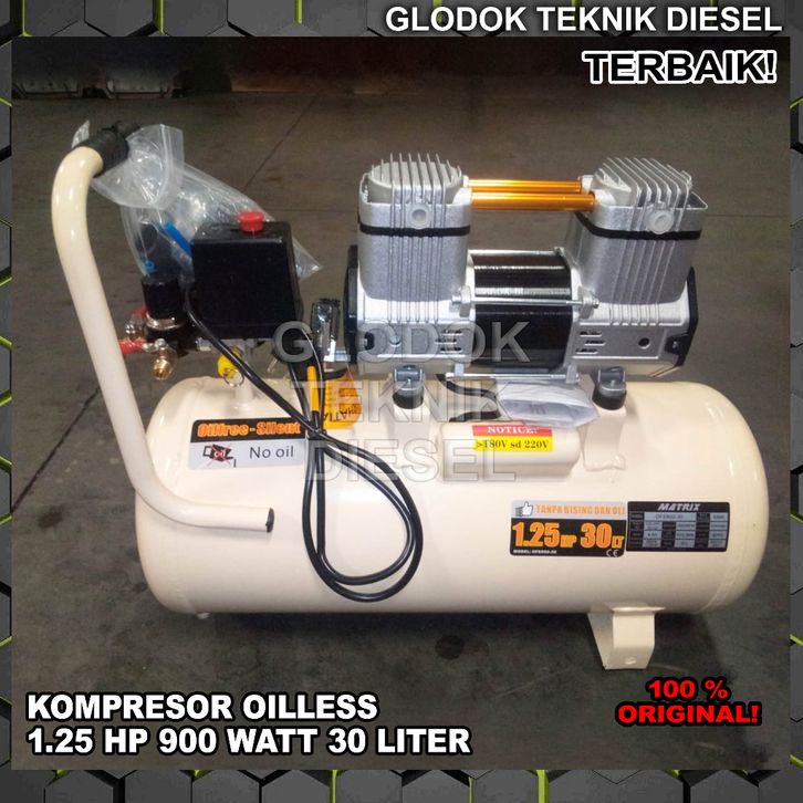 Kompresor Oilless - SINAR JAYA TEKNIK - Kompresor 1.25 HP 30 Liter L 900 Watt Tanpa Oli Oil Less ORIGINAL TERBAIK