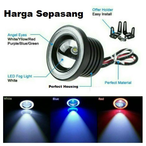 LAMPU FOGLAMP LED 89MM 3.5 INCI 76MM 3 INCH PROJECTOR ANGEL EYES MOBIL UNIVERSAL 76 89 MM KABUT FOGLIGHT LAMPU SOROT