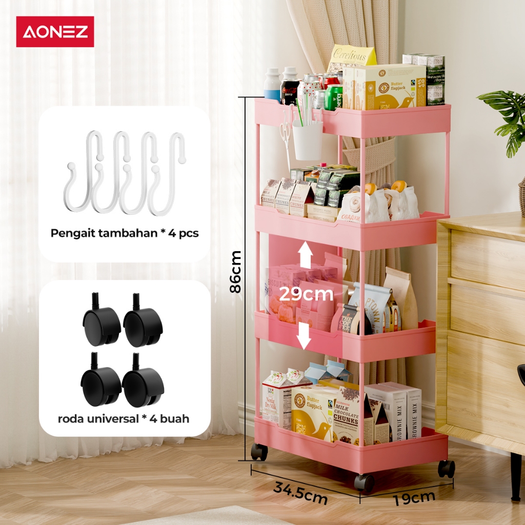 AONEZ RAK SUSUN TROLI SQUARE SERBAGUNA 4 TINGKAT DENGAN RODA RAK TOILET RAK PENYIMPANAN 4 SUSUN