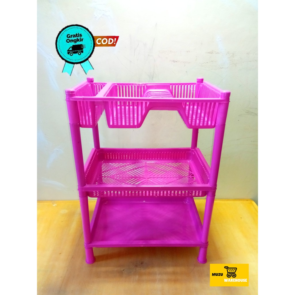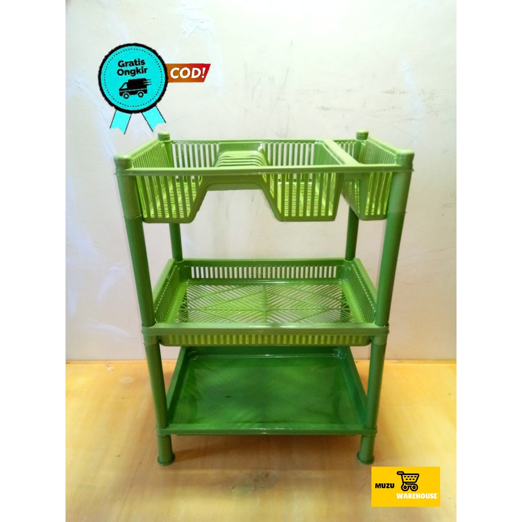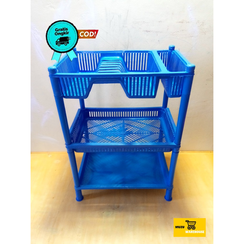 RAK PIRING PLASTIK SUSUN 3 / TEMPAT PIRING PLASTIK KOMBINASI 3 SUSUN MURAH