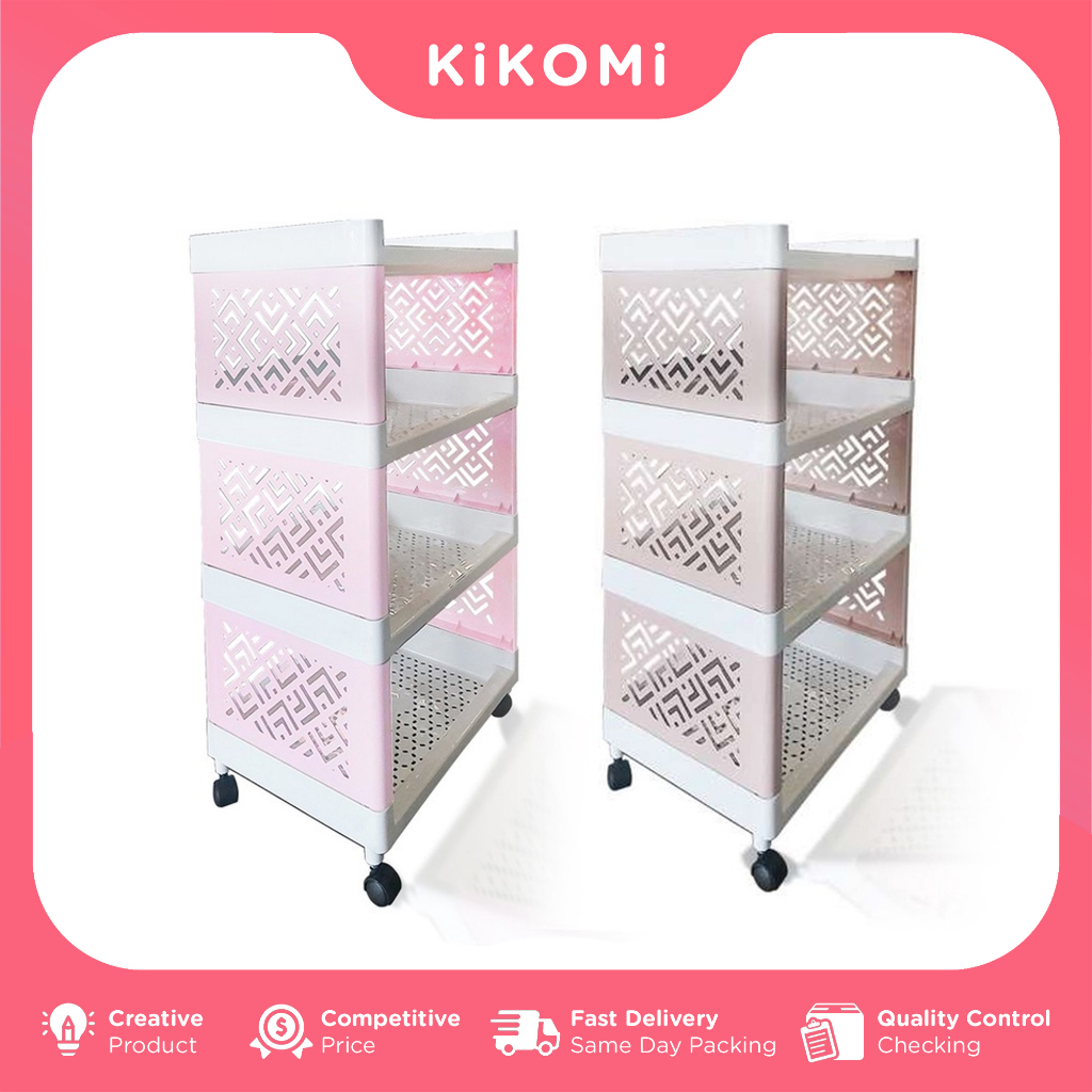 RAK PLASTIK 4 SUSUN DENGAN RODA - RAK SERBAGUNA KIMPLAST RAK PORTABLE KK