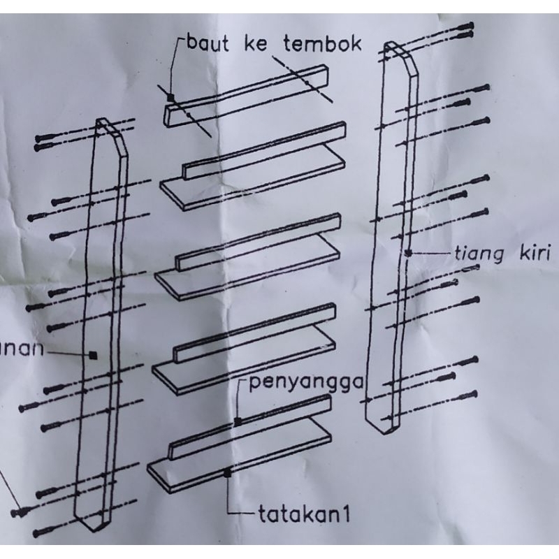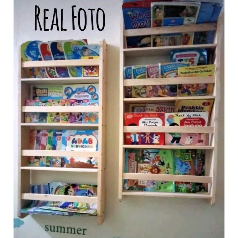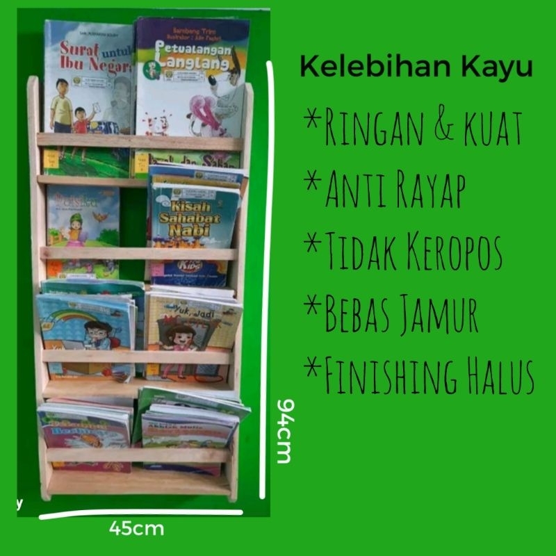 RAK BUKU KAYU 4 SUSUN - TEMPAT BUMBU DAPUR - INTERIOR RUANG TAMU DINDING MINIMALIS SERBAGUNA