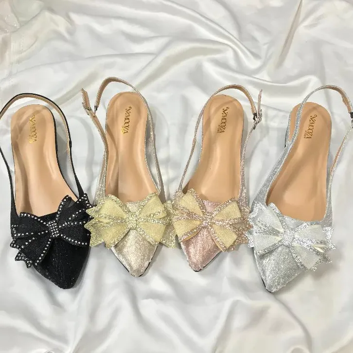 Heels Wanita Hak Tahu 3Cm Flat Shoes kupu kupu Elegan Kekinian