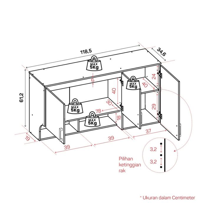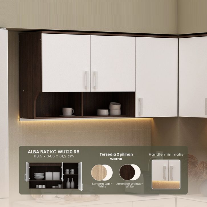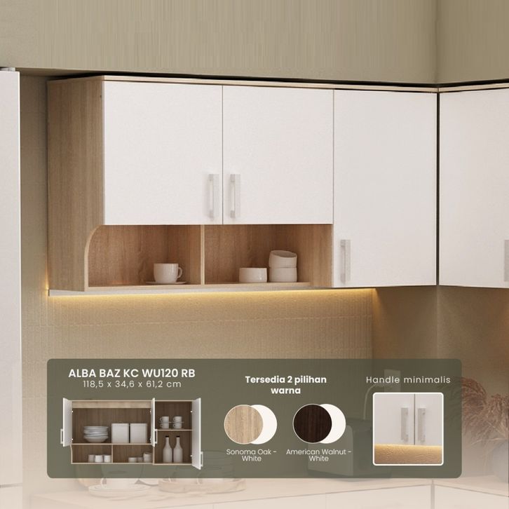 LEMARI DAPUR DINDING PIRA ALBA BAZ KC WU120 RB RAK GANTUNG 3 PINTU TEMPAT PENYIMPANAN BUMBU PERALATAN DAPUR