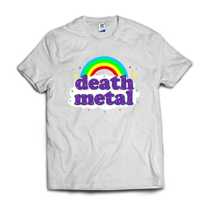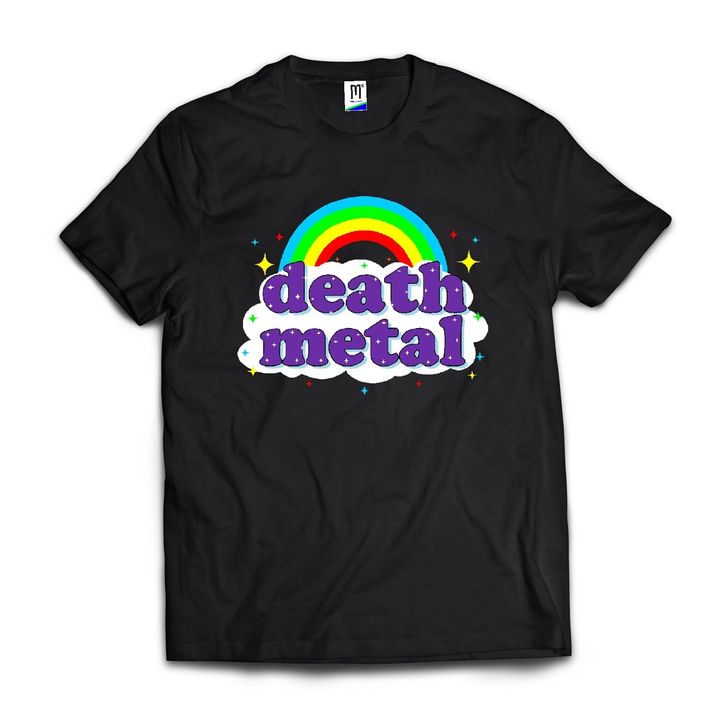 T-Shirt kaos DEATH METAL RAINBOW Kaos musik kaos band Deadsquad Burgerkill TERLARIS