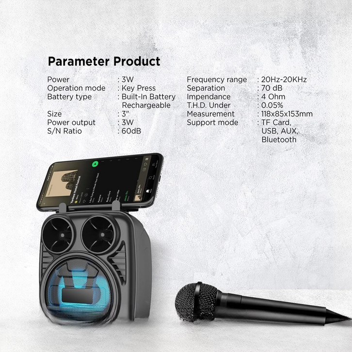 Speaker bluetooth terbaik karaoke led 3 inches mobile phone + mic portable speker aktif blutut terbaik 2024