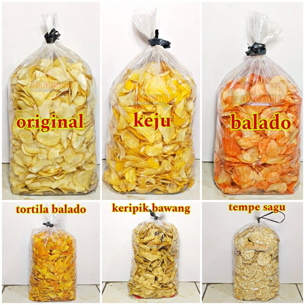 SALE LIDAH, GABUS KEJU, SINGKONG KEJU, LANTING ORIGINAL, KENTANG JAGUNG BAKAR, KERIPIK BAWANG, TEMPE SAGU, KENTANG BALADO, TORTILA JAGUNG, STIK TALAS