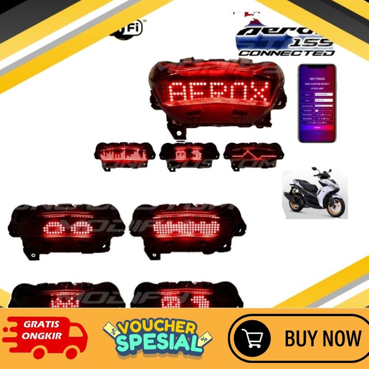 Stoplamp Running Text Animasi Aerox 155 New Connected Lampu LED Belakang Modifikasi Variasi Motor 2020 2021 2022