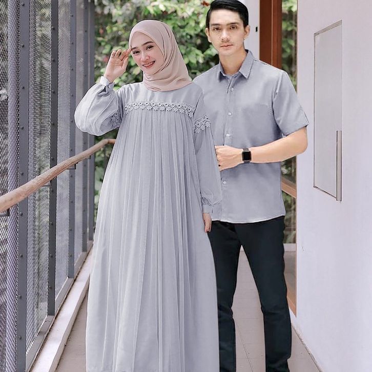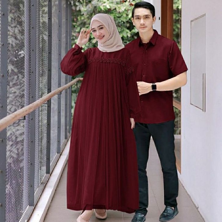 Promo Termurah Nuraini Couple Baju Pasangan Kemeja Gamis Tutu Tile Outfit Muslim Pesta Kondangan Zoyya Cp