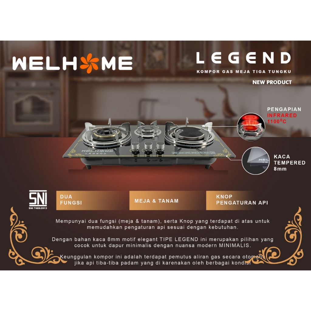 KOMPOR GAS KACA WELHOME LEGEND KOMPOR TANAM 3 TUNGKU / 2 TUNGKU MIX BARA TEMPERED