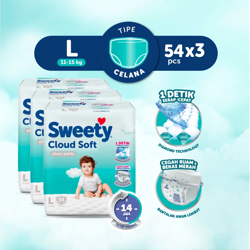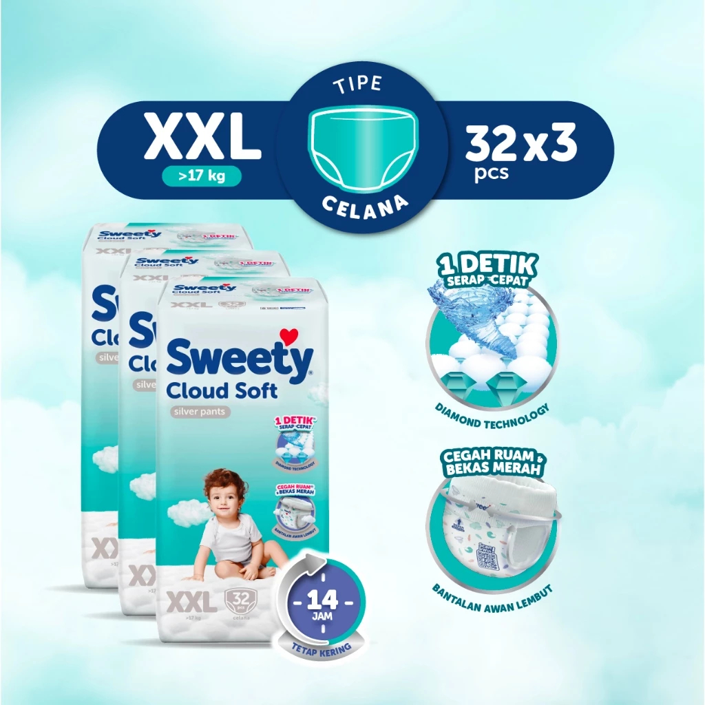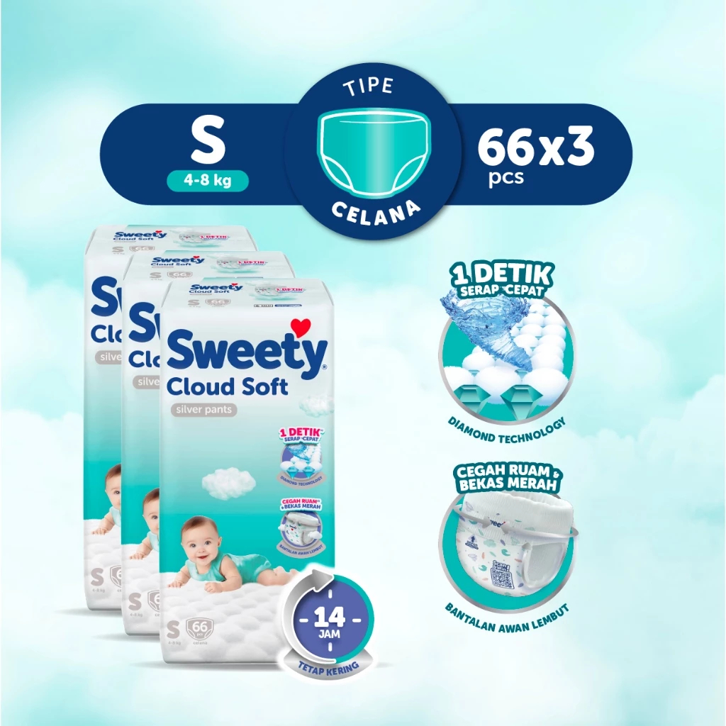 Paket 3 Ball Sweety Silver Pants S66 M60 L54 XL42 XXL32 x3 Popok Celana Sekali Pakai