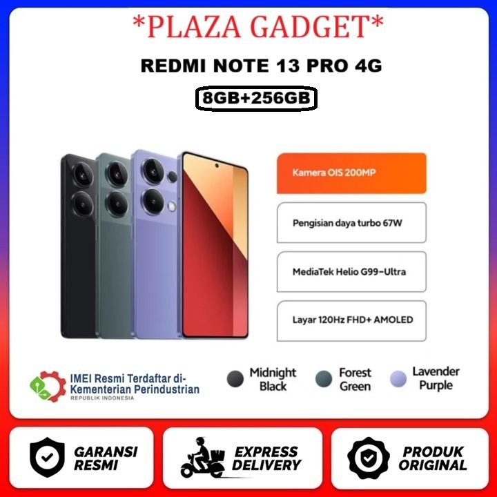 Xiaomi Redmi Note 13 Pro 4G NFC 8GB+256GB Kamera 200 MP ultra-jernih dengan OIS MediaTek Helio G99-Ultra AMOLED