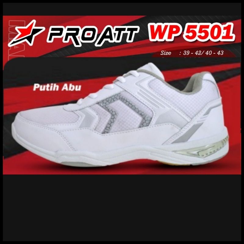 PRO ATT SEPATU SPORT BADMINTON LARI KERJA COWOK PUTIH TALI KARET PREMIUM SIZE 39 SD 43 FREE KAOS KAKI
