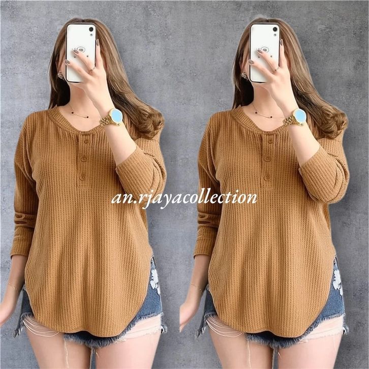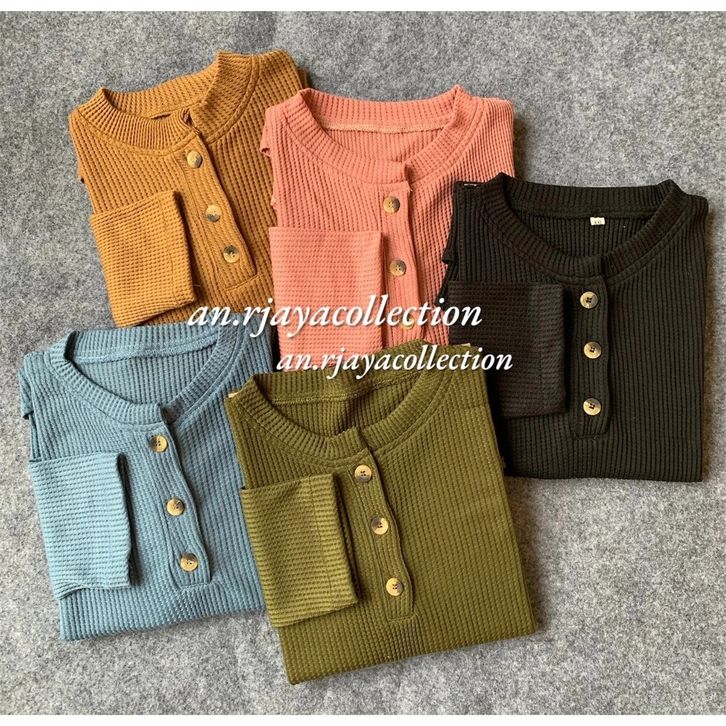Kaos Kancing Polos Waffle Wanita Kaos Lengan Panjang Oval Terbaru Kaos Polos Terbaru Atasan Wanita Blouse Wanita Murah