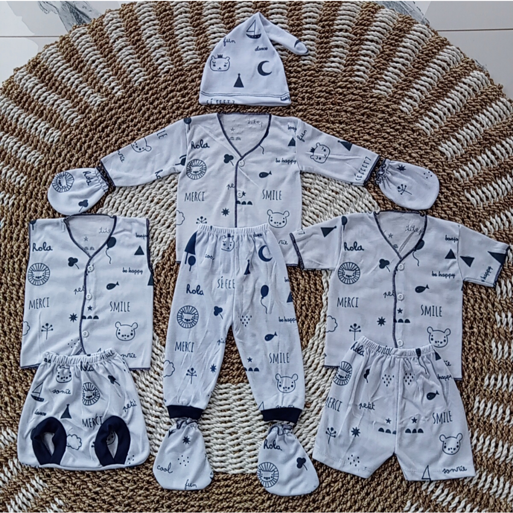 PAKET HEMAT 3 SETELAN BAJU BAYI LENGAN PANJANG, PENDEK,KUTUNG + SARTAKI & KUPLUK BAYI BARU LAHIR