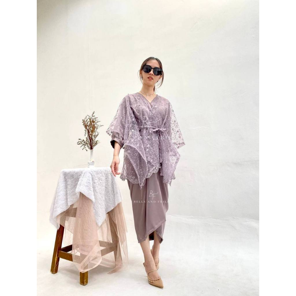 BUNDLE - NAURA + ZELA ONE SET ROK LILIT SATIN + KIMONO BLOUSE SET SATIN WRAP SKIRT KONDANGAN