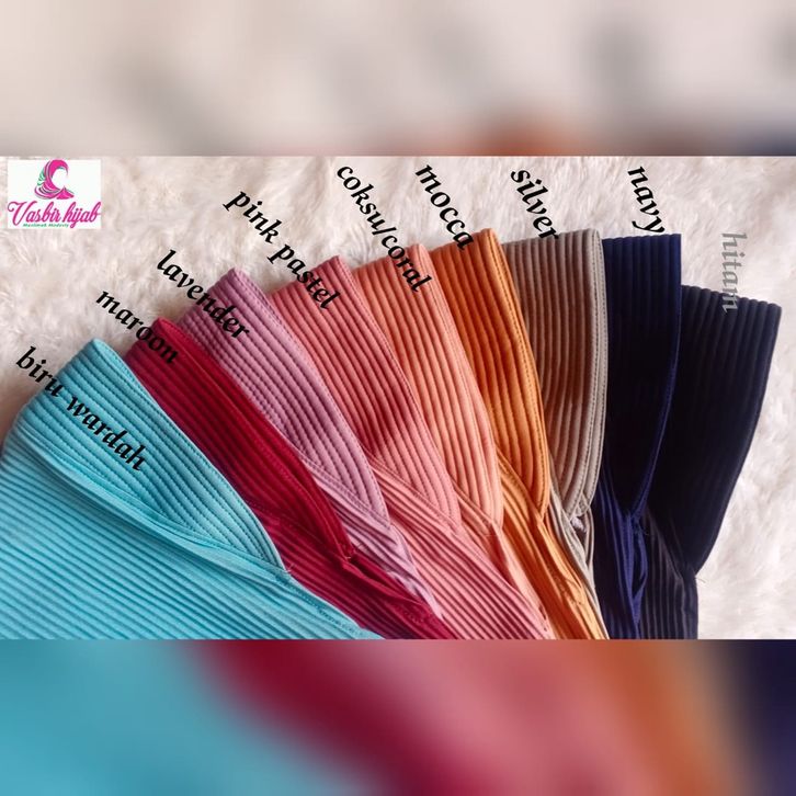 Abu, Army, Coklat Kopi, Coksu, Coral, Dusty Ungu, Hijau Botol, Hijau Muda, Hitam, Khaki, LT Violet, Lavender, Lemon, Maroon, Merah Bata, Mint, Moca/Pemda, Mustard, Nevy, Pink Darma, Pink Fastel, Putih, Tosca, Wardah