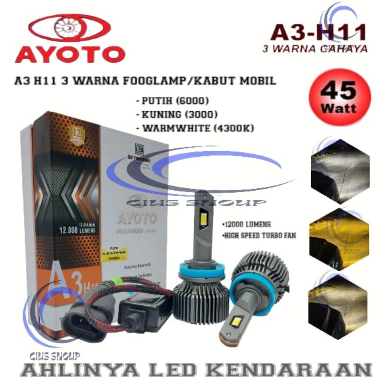 LAMPU LED HEADLAMP FOGLAMP MOBIL H4 H11 H7 HB3(9005) HB4(9006) X9 ECO9 3 WARNA PUTIH KUNING DAN WARM WHITE LAMPU SENJA