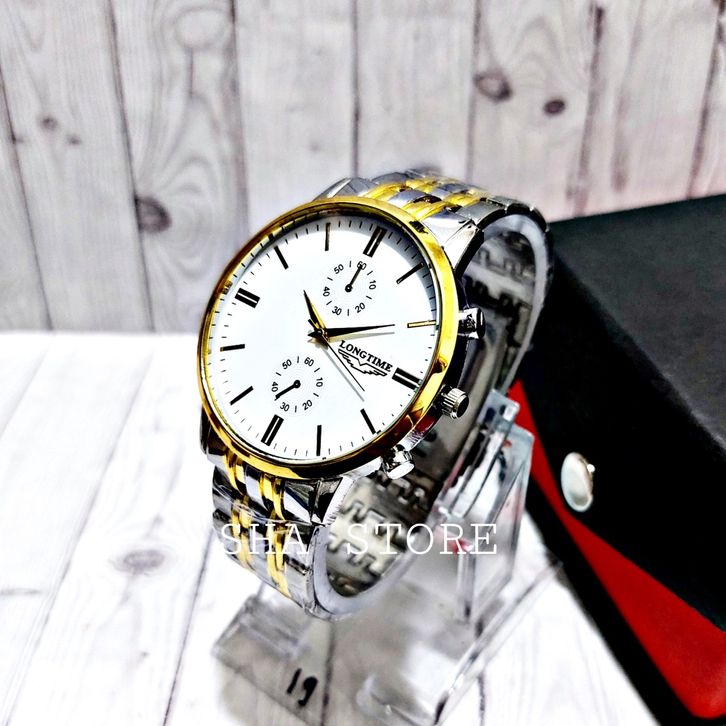 Jam Tangan Cowok Stainless Steel Tali Rantai Arloji Fashion Kasual Formal Cowok Kekinian Free Baterai Cadangan