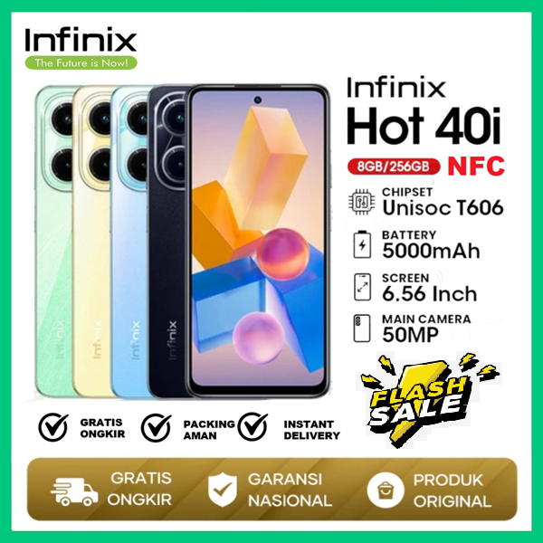 INFINIX HOT 40i 8GB/256GB GARANSI RESMI NFC Up to 16GB Extended RAM Unisoc T606 90Hz Punch Hole 50MP AI Lens 5000 mAh
