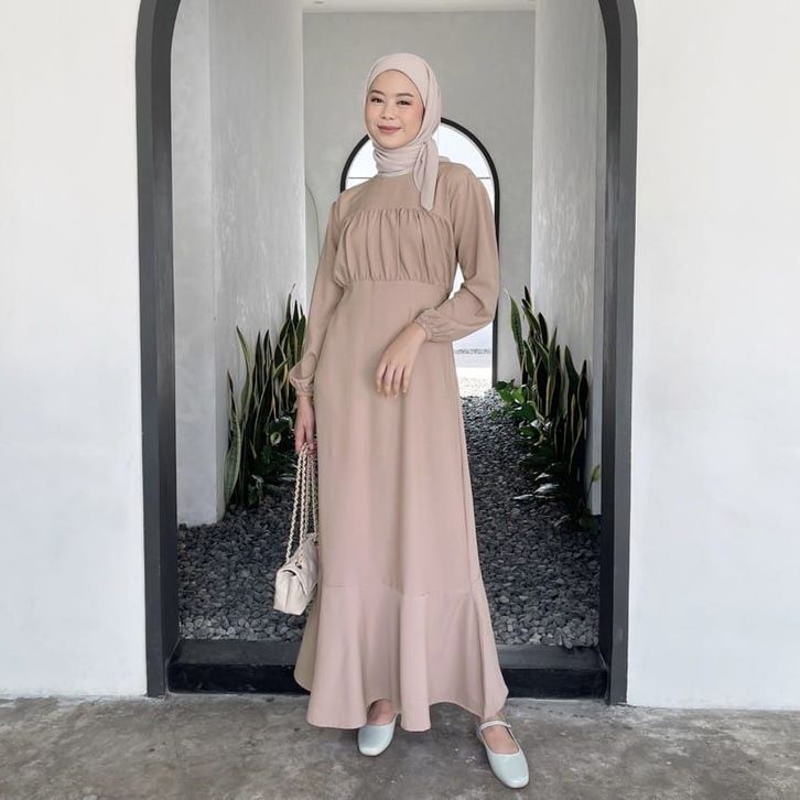 Baju Gamis Wanita Terbaru 2024 Dress Remaja Kekinian Model Muslim Syari Dres Dewasa Set Warna Sage Muda Polos Mewah