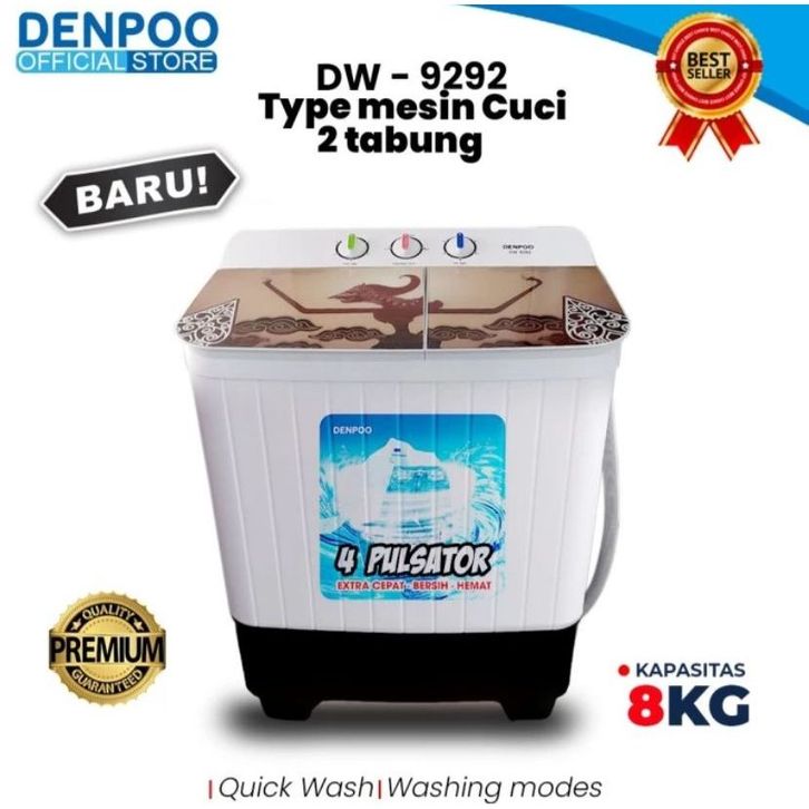 MESIN CUCI DENPOO DUA 2 TABUNG 8KG 8 KG DW 9292 DW9292 TWIN TUB BUKAAN ATAS MURAH