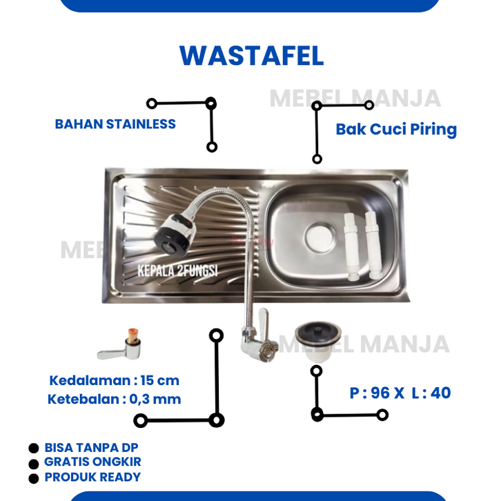 WASTAFEL CUCI PIRING BAK CUCI PIRING STAINLESS 96CM GRATIS AFUR/SARINGAN SAMPAH SIAP KIRIM HARI INI