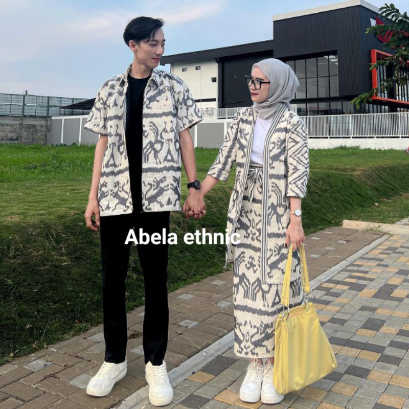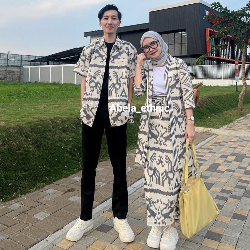 READY STOCK - MADAM WHITE GREY NTT 01 - BAJU TENUN COUPLE - BAJU KONDANGAN TENUN