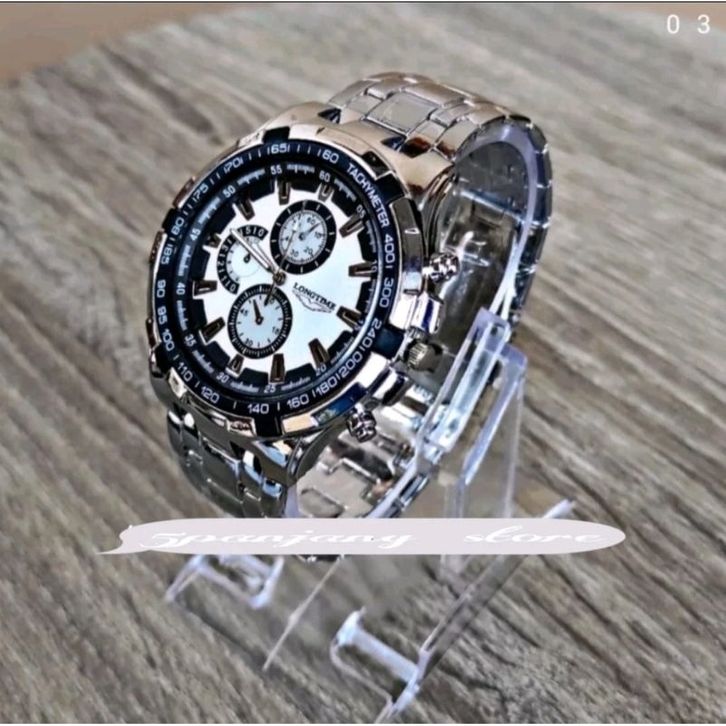 Jam Tangan Cowok Longtime Analog Quartz Model Bulat Strap Tali Stainless Steel Arloji Fashion Cowok Kekinian