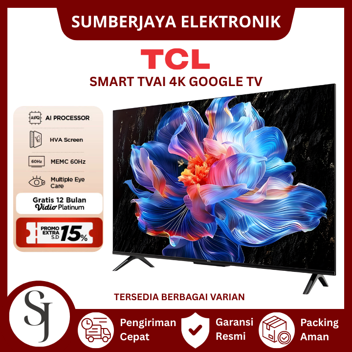 TCL SMART TV 75 INCH V6C AI 4K GOOGLE TV MEMC HDR 10 HVA PANEL DOLBY AUDIO 43 50 55 65 IN DIGITAL ANDROID LED TANPA DP