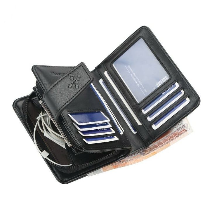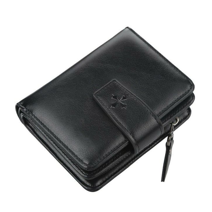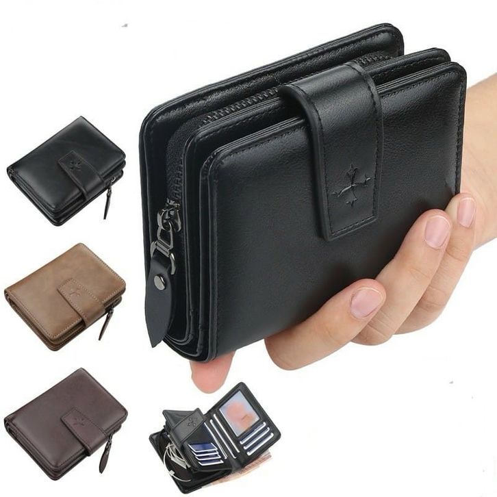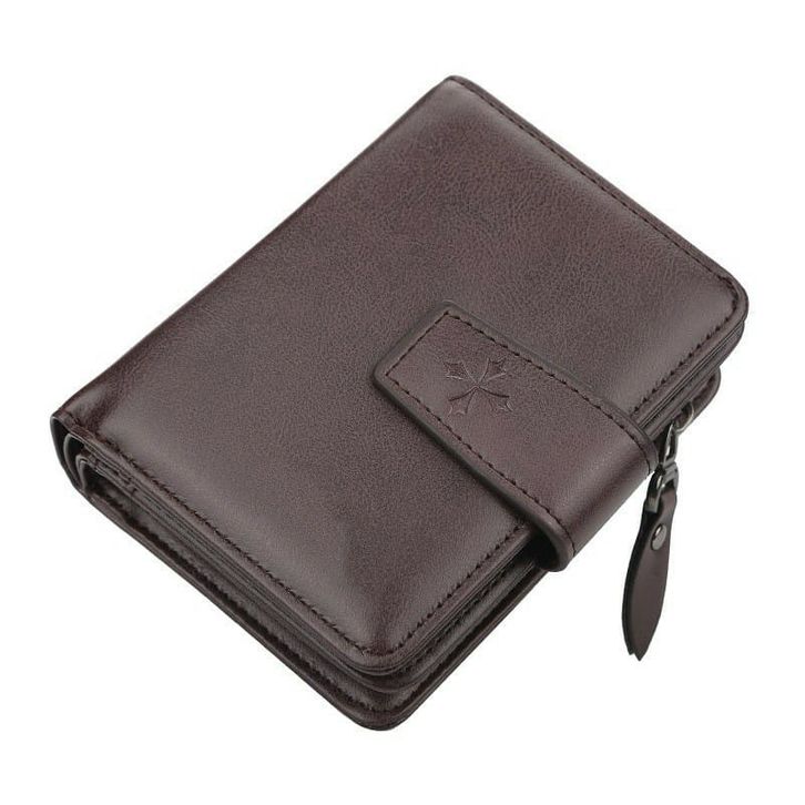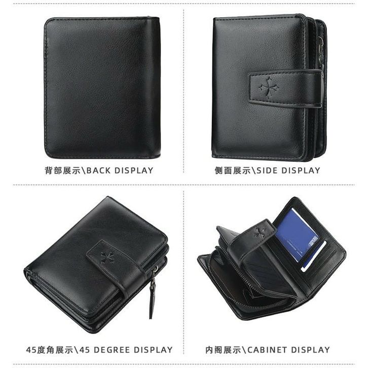 Dompet Lipat Wanita Pria Dompet Penyimpanan Kartu Penutup Resleting Button Praktis Motif Polos Bahan Sintetis Premium