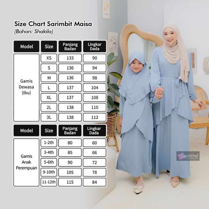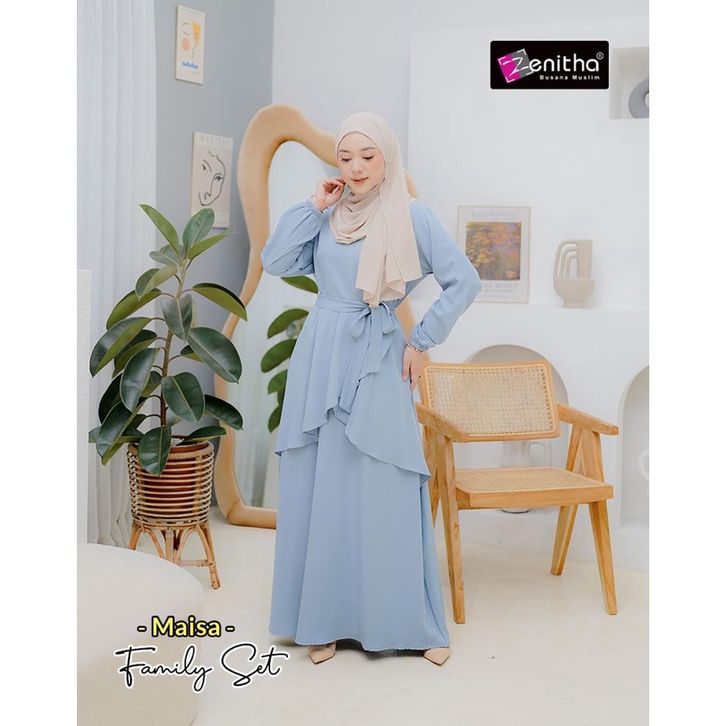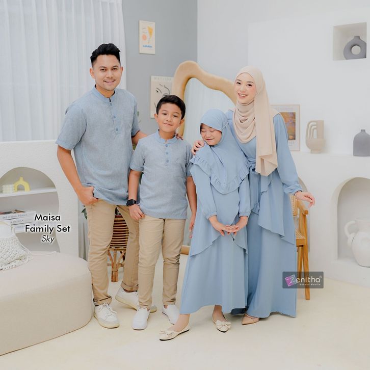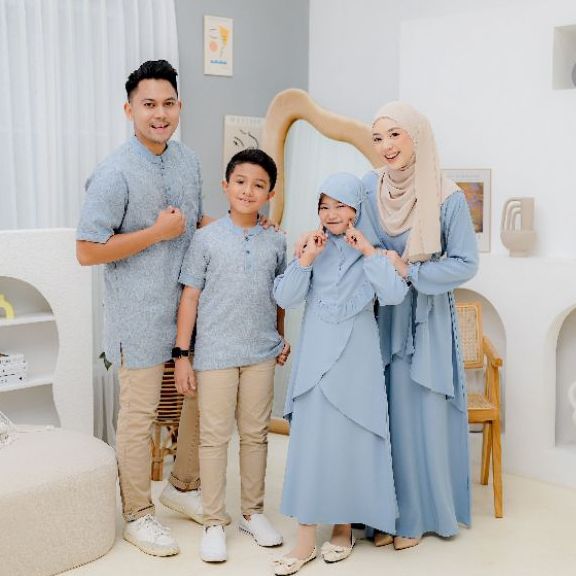 Best Seller | Zenitha Sarimbit Maisa Sky Blue - Sarimbit Keluarga Lebaran Couple Family Set Premium
