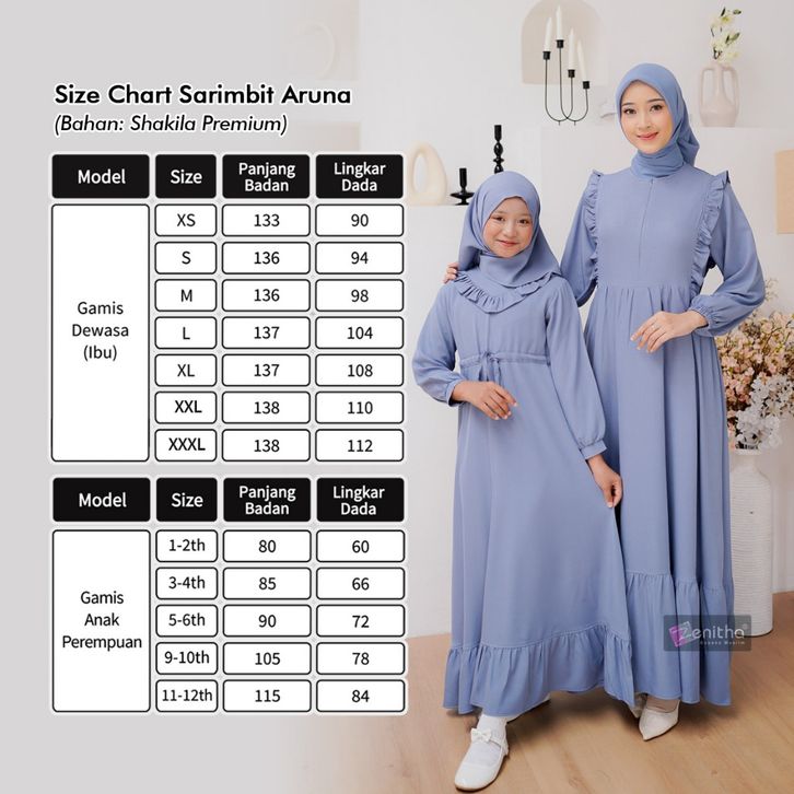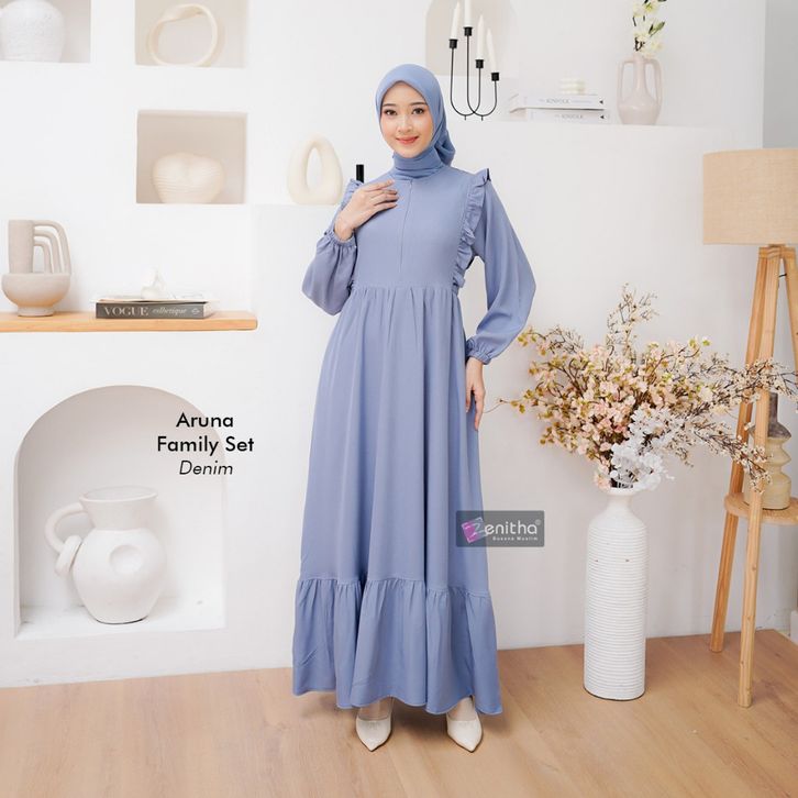Best Seller | Zenitha Sarimbit Aruna Denim - Sarimbit Keluarga Lebaran Couple Family Set Premium
