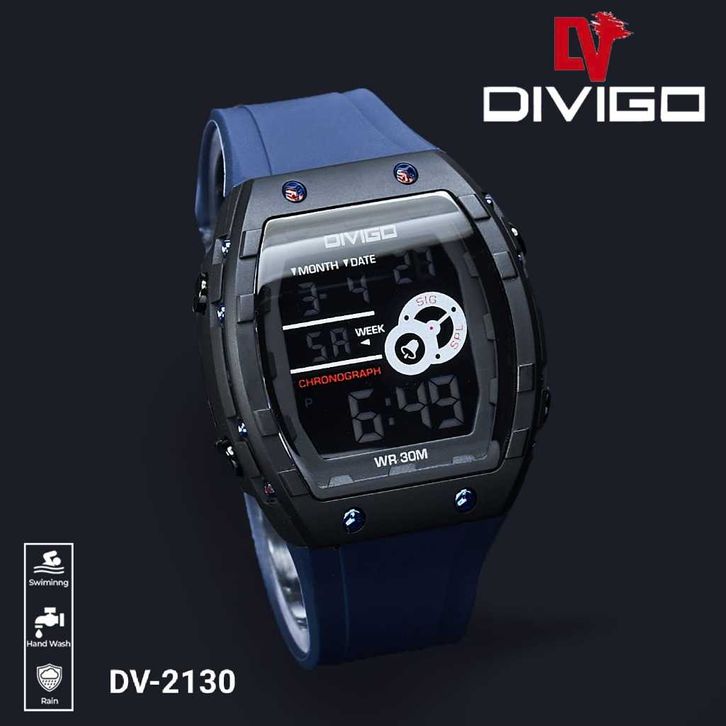 Jam Tangan Cowok Divigo Arloji Cowok Digital Sporty Strap Rubber Tahan Air Fashion Aksesoris Acc Olahraga Outdoor