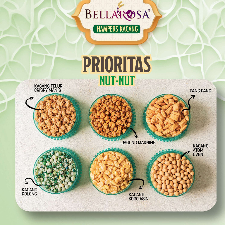 KACANG LEBARAN 2024 BELLAROSA PAKET KACANG PRIORITAS NUTNUT TERDIRI DARI 6 TOPLES
