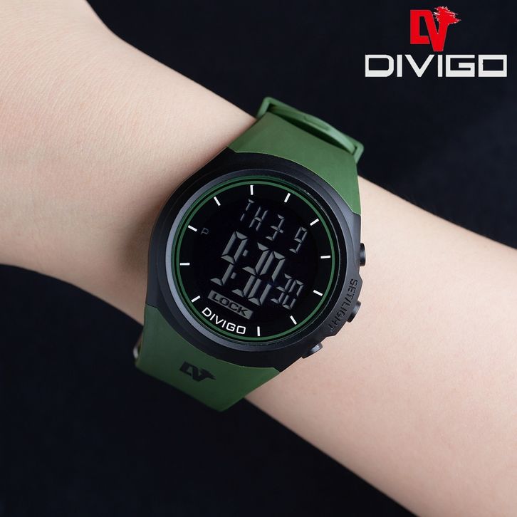 Jam Tangan Cowok Wanita Divigo Digital LED Arloji Model Bulat Cowok Cewek Water Resistant 3atm Kekinian