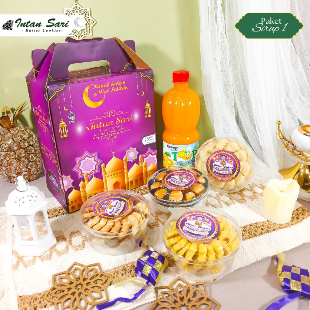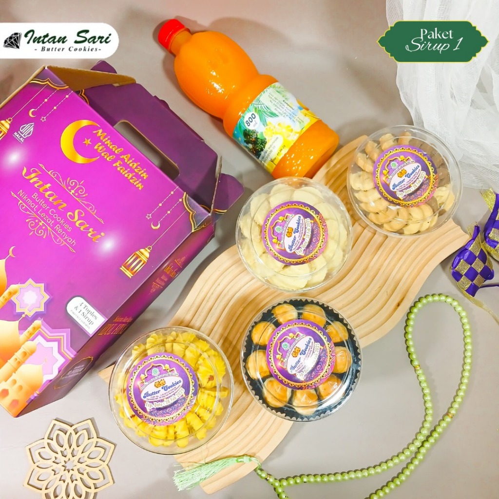 PAKET KUE KERING INTAN SARI PAKET SIRUP SATU ISI 4 TOPLES KUE 1 BOTOL SIRUP PAKET SIRUP SATU