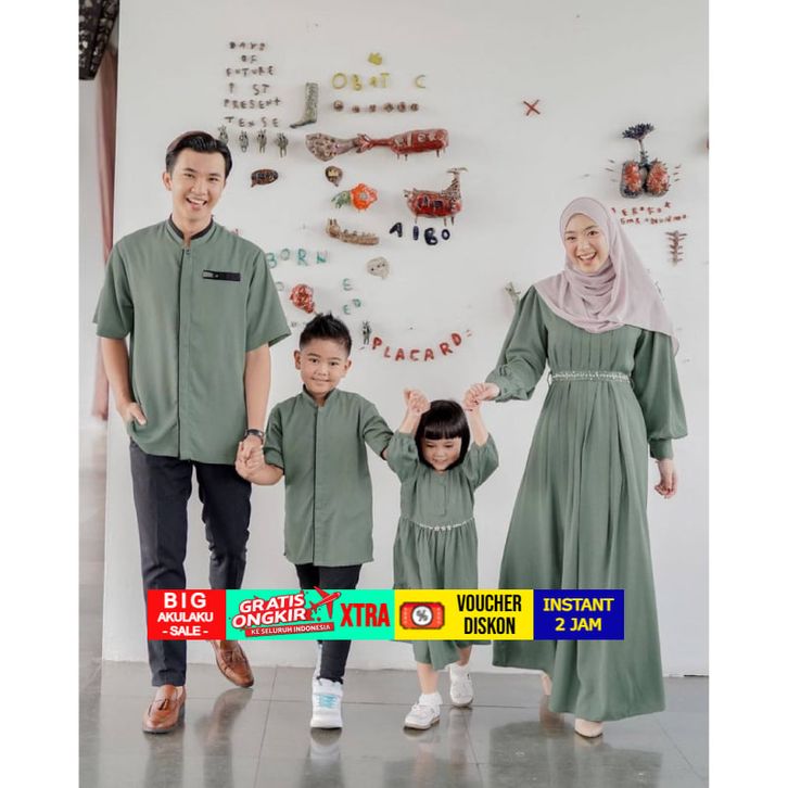 PROMO GRATIS ONGKIR Sarimbit Keluarga 2024 Azizah Baju Couple Keluarga Lebaran 2024 - Baju Keluarga Sarimbit Gamis Koko