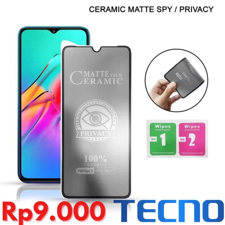 Tempered Glass Spy gores anti pecah tecno spart pova x5 pro 5g 5 neo 3 camon 20 premiere 20pro 10 go 4 neo 2 8c 9t pop 5